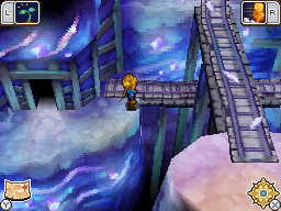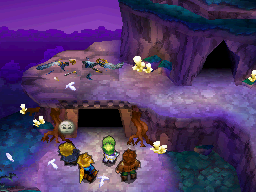 The Abandoned Mine (小山の洞窟 Little Mountain Cavern) is a mine rich in Psynergy Stone minerals northeast of the Goma Plateau beyond the Tanglewood. It and the two aforementioned locations comprise the first three-part introductory dungeon to Golden Sun: Dark Dawn, of which this is the last part. It contains the first boss battle in the game, the Tangle Bloom.