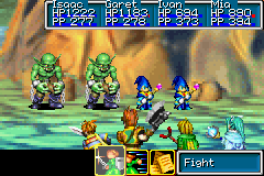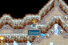 Inside the cave, at the trail you would end up in if you take the normal cave entrance, follow the path left and up, and at the upcoming fork take the right path instead of the upper one. You will enter another cavernous area with ice-like objects scattered about the ground. There is nothing you can do about these objects, so just follow the path until you pass between a pair of torches lined up horizontally. Push the right torch one space down and two spaces right to melt an ice pillar into a puddle, which you can hop over. Follow the subsequent path around to a chest containing a Vial. Retrace your steps, hop back over the puddle, and head downward to exit into the northern area of the overworld, where the eventful Imil and Mercury Lighthouse segment of the game awaits. After completing all that, you will pass back through this cave with Mia in your party to return to the Angaran mainland, and finding your way back down through the cave shouldn't be hard.