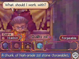 Although she first appeared in the previous game (Golden Sun: The Lost Age), Obaba doesn't fill the blacksmith role until Golden Sun: Dark Dawn. Even in The Lost Age, though, Obaba shows off her skills with the forge by repairing the Trident of Ankohl, which Felix's group needs to defeat the guardian of the Sea of Time.