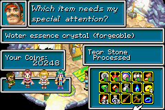 Although he can't get any materials himself, Sunshine will craft any items brought to him by Felix's party. However, everyone needs to make a living, so Felix must pay for the item once it is finished. The price Sunshine (or rather, his wife) charges is the same as it would cost to buy the item from ordinary vendors. Players do not necessarily have to leave Yallam for Sunshine to finish his project. Instead, one can visit the local sanctum or spend a night at the inn.