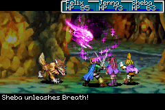 Golden Sun: The Lost Age: Breath may find some use early on in the game because it is the first Jupiter Djinni, when party resources and healing measures are sparse. You might be encouraged to have Breath on an Adept with a lower Speed rating so that the priority effect will apply itself more relevantly, but that means not having it on Sheba; while usually she is the naturally fastest party member and the most likely to make Breath's priority irrelevant, Sheba is the sort of Adept used for support roles such as healing to begin with, so Breath has a place on her in that regard. Its reliable but small healing and the summoning it can allow can be particularly useful in the Briggs boss fight, when you only have three party members.