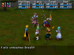Golden Sun: Dark Dawn: Breath continues to be not the most useful healing measure for most of the game because of how it ultimately heals only 40% of one target's HP. To put this in perspective, the "weaker" Djinn that restore HP to the party, like Flower, restore 30% of all four party members' maximum HP. Breath could be Set on an Adept other than Karis, because she has both the speed and the Fresh Breeze Psynergy series to basically obsolete Breath - most of the time she moves before any enemy anyway, and Fresh Breeze heals the entire party for perhaps the same amount as Breath heals a single Adept.