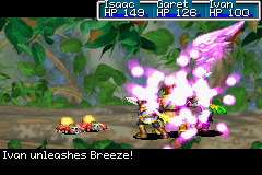 Golden Sun: Breeze is the one Djinni that is Resist doubled in effectiveness, and since Resist is a Psynergy that is not available to any Adept until level 22 while this Djinni is acquired early in the game, this can be a very valuable measure to lower the damage of boss enemies' elemental assaults toward you from when it is collected all the way up to the endgame. When Ivan is in his mono-elemental class series, the Wind Seer class series, he will learn Resist at 22, but unleashing Breeze in battle should almost always be considered a superior option because it is a twice-as-strong effect that does not even detract from his PP-meter, and the fact his Djinni will be then put On Standby may better let him perform a Jupiter summon the next turn. Note that resistance-buffing effects like these stack with each other up until all Adepts have +80 resistance rating modifiers.