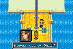 Felix's party decides to try and fix the ship themselves with their Psynergy powers, so that they could conveniently sail back to Madra on it afterward with the Elder and Mayor of Madra to return to Piers, but the boulder pinning down the mast proves too much for even the Adept's considerable talent, and are forced to travel back to Madra on foot. Before leaving, they see Chaucha and Eoleo visiting Briggs in the jail, where they remark about how the gruel Briggs and his men must eat is disgusting. Eoleo fiddles around with a nearby key with Psynergy power, to Felix's considerable surprise. Briggs realizes that Felix can sense Eoleo's power and scolds his son, as he had come up with a plan for escape that involved Eoleo using his Psynergy to get his hands on the cell's keys, something which he had to be sure Felix wasn't going to interfere with. This escape plot would only occur in the future, however, because as it turns out, the greedy Mayor of Alhafra resents the Madrans owning the ship Alhafra built, so he holds off on repairing the ship and instead used the funds to repair his town, which had suffered considerable damage in the tidal wave. This is not only to the chagrin of just Briggs and Chaucha but the Mayor of Madra as well, especially considering that the Alhafran Mayor is using Madran Gold to fund his greedy ambitions.