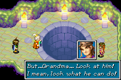 But Felix and his band of Adepts most certainly are aware that Briggs has committed large-scale piracy, and they arrive at the town to (among other things) confront Briggs and set him straight. When Briggs sees him in town, he flees inside the cliffs of Champa in terror while Felix pursues. Within the mountain at the Forge of Ankohl, Felix stands opposite of Briggs and Obaba. Obaba is not impressed at Felix's looks, saying that he does not appear to fit Brigg's obviously one-sided description. Briggs pipes up and exclaims that Felix will take him far away if Obaba doesn't destroy Felix now, something Obaba doesn't believe at all, but regardless, Briggs wins her over by saying how "poor Eoleo will be so sad" when he does. Obaba, unable to deny her great-grandson, takes out a pet lizard and throws it into the forge, imbuing it with great power and transforming it into the Avimander. Felix's party engages in a battle where the overgrown salamander is slain.