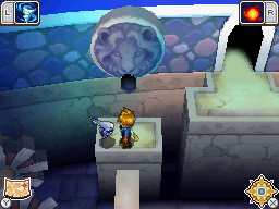 Golden Sun: Dark Dawn: Doldrum is found and fought in the dungeon in Craggy Peak. Craggy Peak has twelve hallways leading to twelve puzzle rooms, each themed off one of the twelve in the Zodiac, and Doldrum is in the hallway to the Taurus room. Enter this hallway, hop up once to the right, and cast Grip on the white spire to rotate a stairwell counterclockwise so that the stairwell connects to an elevated platform to the left. Hop right and up, and use Grip on the other stairwell to rotate it counterclockwise and make the stairwell connect north. You can now hop to the stairwell, climb it, and hop left to the elevated door to the Taurus room, but you will see Doldrum in the jaws of a lion-head statue to the left. Cast Fireball on it to make it drop to the platform below. Retrace your steps back to the hall's entrance, and go up to the elevated platform to the left and follow its path north to where Doldrum now resides. Fight it to earn it, then continue to the Taurus room to progress with the dungeon. As Craggy Peak becomes permanently inaccessible once Belinsk Ruins is completed much later in the game, Doldrum can be permanently missed by that point. See here for enemy statistics.