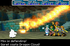 Dragon Cloud and Epicenter are offensive, single-target Psynergies. The final amount of damage is determined by comparing the user's Mars Power to the target's Mars Resistance and using the difference to modify the base power of the particular Psynergy in use.
