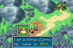 Golden Sun: Isaac and Garet stumble across Flint shortly after leaving Vale for their journey. Flint provides the two young Adepts with a tutorial on how to use Djinn before joining them on their quest. The game technically grants the player the option to refuse to let Flint accompany them, but no matter how many times Flint is refused it will be added to the Djinn collection regardless.