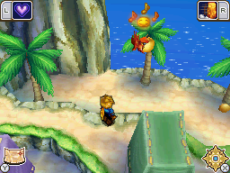 Golden Sun: Dark Dawn: Fugue is found in Champa Camp. First, go up to the weapon shop tent, but stand directly behind it and face the tree that Fugue is on. Fugue will be hanging onto a yellow fruit swinging at the tree and projecting cheery face icons at a regular rate. Cast the Slap Psynergy to knock Fugue down and cause it to faceplant into the ground. Then, go into the thin, partially-obscured trail of water between the canoe and the elevated land, south of the Inn tent, and follow the shallow water counterclockwise around Champa Camp to where Fugue is. Despite the treatment you gave it, it will add itself to your Djinn inventory without any apparent hard feelings.