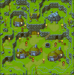 Garoh (ポピーチー村 Popiichii Village) is a small village located in the south-central region of Osenia and west of the Balloo Range. It first appeared in Golden Sun: The Lost Age. Well hidden from the naked eye, the village sits within the depths of a mountain, only accessible by climbing up the stairs and moving heavy tree bark that blocks the way.