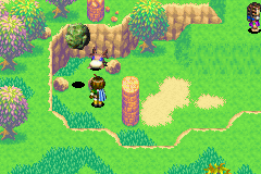 Golden Sun: The Lost Age: Geode is hidden within the lower left part of Atteka Inlet where the boulder is, and to have it appear you need to cast the Cyclone Psynergy - but to get to it, you need the Lift Psynergy, which you only get as part of the inventory of Isaac's party when they join Felix's party late in The Lost Age. In Geode's case in particular, though, it can be acquired very shortly after the reunion takes place because the game's plot progression dictates you go from Contigo to Atteka Inlet right away. So, before going to the screen where your ship is, fetch Geode in the pictured area.
