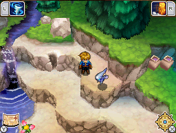 Golden Sun: Dark Dawn: The first time the player goes through Goma Highlands Road early in the game, Gust and the party will spot each other and it will run away. It will situate itself in the top screen of the area, in a spot that cannot be reached from the ground level. It can only be reached by exiting west out of the nearby Carver's Camp a special way; in town, go counterclockwise around the northwest house until you are to the upper right of an earth pillar on a path that suggests it can be moved right two tiles. Your remote Move Psynergy can be used to move this earth pillar right two spaces, dropping it down. Now you can hop onto it and exit off the left side of the screen on the elevated green route. Now on an elevated portion of the last screen of Goma Highlands Road, go to the lower left to the tip by the gondola station, face left toward a gondola, and cast Fireball to propel it to the station. Hop onto its seat and cast Fireball again to transport yourself to the elevated lower left corner of the screen. Follow the linear path along the elevated perimeter clockwise to where Gust is waiting, and fight it to obtain it. A nearby cliff slide will let you return to Carver's Camp quickly. See here for enemy statistics.