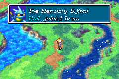 Golden Sun: Hail is a Djinni that is randomly encountered in a specific area of the overworld that otherwise appears to be pointless scenery. Thus, it is very often missed by players playing the game the first time without any outside information. The battle with Hail may ensue in place of a random battle in the stretch of land to the southwest of Altmiller Cave, possibly as soon as the player crosses the bridge. See here for enemy statistics.