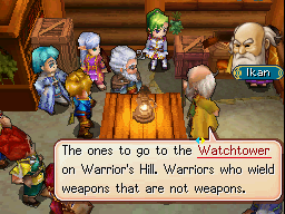 Convinced of the group's abilities, Ikan tells the group of prophecies relating to the Grave Eclipse. In particular, he informs them of the history of Warrior's Hill, which has a treasure that will allow them to find some way to combat the newly unleashed Grave Eclipse. Warrior's Hill had originally been buried beneath the ground, but had risen as the Grave Eclipse began. Ikan gives Matthew the Watchtower Key needed to explore Warrior's Hill and sends the group on their way.