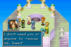 At the conclusion of the tumultuous battle, Isaac remains stoic even as his peers express horror, grief, and rage over the revelation of who exactly they have killed. Isaac soon broadcasts how he had known from the very beginning what he was about to do and declares that their parents would understand their decision to defy the Wise One in order to save the entire world. The other Adepts generally find it within themselves to agree with Isaac on this point. With their quest almost at its somber conclusion, Isaac remains with his dying father as Felix casts the Mars Star into the Mars Lighthouse's well.