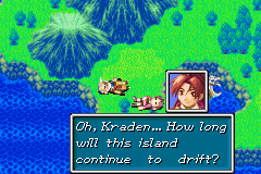 Felix, however, decides to leave this responsibility to Alex and head back up to the aerie to confront Saturos over Sheba' involvement more forcefully. Jenna expresses concern that Felix could end up fighting with Isaac if they happen to cross paths at the aerie, and she asks out loud "why are boys such fools." Alex expresses surprise to hear such concern coming for her, and Jenna takes this as an insinuation that she is insensitive and snaps at Alex for talking to her like that. At any rate, Alex reassures Jenna that Isaac's party, though sworn enemies to Saturos at this stage, will not be able to defeat the Mars Adepts, and Jenna is convinced to head to Idejima and wait there for Felix.