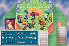 Jenna is a Mars Adept and a primary playable character in Golden Sun: The Lost Age after appearing as a guest party member in the previous Golden Sun. In the first game's prologue, she is introduced as a resident of Vale and childhood friend of Isaac and Garet who gets emotionally devastated when a terrible incident at the village seemingly claims the life of her older brother, Felix, and both of her parents. At the start of the game's main plot, Saturos' villainous company — whom a very-much-alive Felix has been coerced into cooperating with — steals three of the Elemental Stars and sees fit to take Jenna with them as their captive in hopes that Isaac and Garet will pursue them for her freedom and give them the final Star in exchange.