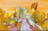 Kraden, Jenna, and Alex spend some time idly waiting on Idejima as it floats east out to sea, only to suddenly discover Felix and Sheba having swum onto the island. They relate the astonishing news that Isaac's party caught up to Saturos and Menardi and actually slew them in battle, and that the earthquake set off by the lighting of the Venus Beacon caused both Sheba and Felix to fall off the tower and into the ocean below just as Idejima was being torn away. With the Black Orb now lost with Saturos, the five travelers remain just as incapable of getting off the island using Menardi's inoperable ship... at least until a tidal wave approaching from the east suddenly washes over the island, driving it straight onto the north end of the island continent of Indra. Though the wave knocks out Kraden and most of the others for a short while, Kraden appreciates how lucky they are that they ended up back on solid land.