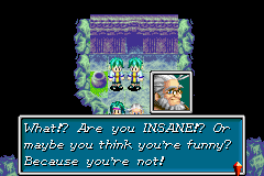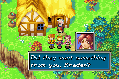 In a rather well-hidden Easter egg, Kraden has some spectacularly incensed lines of dialogue that can only be seen in Golden Sun: The Lost Age by picking specific dialogue choices throughout much of the game. Typically, when the party reaches the guarded entrance into Lemuria and the guards ask if they have Felix's word that the party will not cause a disturbance inside the city, the Yes/No choice will have Kraden react either with giddy anticipation over entering the city or disapproval at Felix's response, respectively. However, if throughout the entire game prior to this point the player makes sure to say "No" every time a question is asked in which Kraden and the overall progression of the plot would logically expect Felix to agree and say "Yes," a different pair of dialogue branches will take the place of the normal Yes/No choice by the time the party gets to Lemuria:
