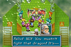 What transpires next is a complex procession of revelations both between the two sides and amongst the Tuaparang itself. Blados and Chalis drop by for the ostensible purpose of claiming the Apollo Lens for the High Empyror, but Alex implies that the dark duo are wielders of Dark Psynergy and members of the lost Umbra Clan who seek to betray their Empyror and fire the Lens at the Empyror's domain instead. Whether or not Alex suddenly telling Matthew's party to fire the Lens at Eclipse Tower either is an as-of-yet-unexplained facet of the Empyror's long-term plans or amounts to Alex betraying the High Empyror in his own right is unclear, but the party willingly complies. Blados and Chalis soon deploy the mutated Chaos Hound against the party, and they eventually resort to merging together with the beast, but the miraculous victory Matthew's party achieves over this chimeric entity inspires Kraden tell his young friends, "You've done your parents one better."