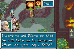After Alex leaves, the party speculates on whether he meant to do Kraden a "favor" with that unbidden news, since it would logically mean that Kraden should no longer feel the need to put himself in danger pursuing his quest for Lemuria on Babi's behalf. Though Kraden is obviously shaken by the news, he reveals to Felix's allies that he has since found another reason to continue taking part in the quest regardless. Kraden vaguely discloses that, over the course of the group's exploration of the world thus far, he has been forming a theory which he has only been discussing with Felix in private, and he expects that the group's visit to Lemuria will confirm it. Piers has a hunch as to what Kraden is thinking and believes it to be correct, which is why Piers means to bring Kraden and the others to Lemuria as soon as possible.