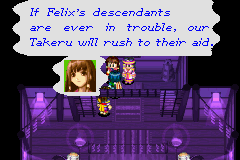 - Kushinada: (Thinking) If Felix's descendants are ever in trouble, our Takeru will rush to their aid.