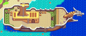 At least three of these vessels are relevant to the series' plot, and many more are docked in Lemuria itself. In Golden Sun, one seems to be under the ownership of Menardi, and one that was originally stolen out of Lemuria by Babi is entrusted to Isaac at the end of the game. In Golden Sun: The Lost Age, a third is owned by new party member Piers, and after it is explored as a stationary dungeon, Felix's party gains use of it as a mode of transportation across the expansive oceans of the game world. In Golden Sun: Dark Dawn, Piers's modifications to Briggs's Sailing Ship appear to have effectively made it a Lemurian Ship, giving it the same figurehead and, as implied by one of the shipwrights, control system. Lemuria has apparently refitted some ships from Sana as well, and the Lost Ship also appears to be of Lemurian design.