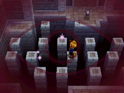 Golden Sun: Dark Dawn: Once Himi is recruited into the party in Yamata City on the island of Nihan, the tiny island northwest of that, Otka Island, can be accessed by steering the ship into the whirlwind that whirls through the ocean east of Angara in a set pattern. The whirlwind will drop the ship off inside the enclosed perimeter of the island, and once you get inside the dungeon's first room, use Himi's Search Psynergy while the screen encompasses the telltale purple sparkles to make platforms appear where the sparkles are. Hop across the newly formed left platform, then hop up and right to get to where Lull waits in plain sight. You must fight it to add it to your Djinn collection. The rest of the dungeon cannot be explored until the post-game, so let the whirlwind take you back out from Otka Island. See here for enemy statistics.