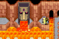 - Throughout every interior floor of Magma Rock, every small, sideways-facing small moai head that is placed at the bottom of a ledge can be activated by casting Burst upward at it while standing directly underneath it on the lower level of the current floor. Burst is not supposed to reach the small statue from underneath it, but it does because of a programming oversight, and it allows Felix to walk around in the part of the floor that is supposed to be submerged in lava. He will appear as if he were "walking on lava", and since the collision detection that prevents the party from climbing into the lava in normal play will also prevent the party from climbing back up to solid land, the party will now be stuck until you cast Retreat.