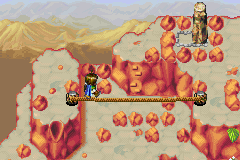 Magma Rock's location on the world map can be reached as soon as Felix's party sails into the Western Sea later in the game; sail into the river east of the southeast tip of the island continent of Atteka and you will sail up a thick river through the center of southern Gondowan, where you can disembark northwest of Kibombo's location on the world map. Magma Rock is a short ways north, though you can detour farther northwest to find Gondowan Settlement. However, a round boulder that immediately blocks your way can only be surmounted after completing the Jupiter Lighthouse episode and expanding Felix's party with Isaac's party from the first Golden Sun; they will bring with them the previous game's Lift Psynergy.