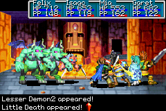 Fury: A Mars Djinni that is found at the left end of the "bottom hall" of this floor. It can only be reached while the lava level is lowered.