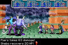 The tower can only be accessed once the eight-member party has used the Magma Ball from Magma Rock to cross into the Northern Reaches, entered the village of Prox from the south end, and exited it out of its north end. While battling in Mars Lighthouse, both of the Mars Adepts in your party, Garet and Jenna, regenerate 4 PP at the end of each turn.