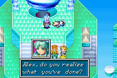 This is when Alex next steps into view, commenting that it has been quite some time since he and Mia saw each other last; in so doing, he confirms that he was the one who let his newfound companions invade Mercury Lighthouse. Greatly alarmed that her own clan-mate has betrayed their shared oath to their clan's bloodline, Mia accuses Alex of having gone mad, but Alex attempts to impress upon her the value of releasing mighty forces such as this, supporting his stance with the fact the Mercury Beacon empowered Mia during the battle. Mia learns from this that her own powers are the same "Psynergy" as what Isaac and Saturos' sides have been demonstrating. It soon comes out that Alex was stalling for time so that Saturos could stand back up and Alex could help him escape the tower, and Mia is very surprised when Alex utilizes a "warping" Psynergy to do so; as she explains to Isaac, Alex never exhibited that kind of power before. Alex's parting words to Mia before he leaves with the rest of Isaac's enemies are that he cannot "stay the same Alex" she knew.