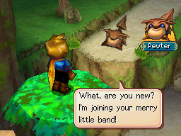 Unlike most Djinn, Pewter is given a speaking role and is treated like an actual character rather than just another collectible. Flint and Echo are the only other Djinn that share this distinction, and Pewter can be said to have more of an actual story role than either of its two peers ever have. While good-hearted and willing to help, Pewter is perhaps the sassiest character in the Golden Sun series, prone to talking back and putting down other characters' perceived character traits with inventive names like "fishbrain". Those he serves find him irritating and ill-mannered at times, whether it's the party or his original master, Laurel.
