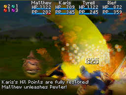Pewter is one of only three Djinn, along with Flint and Echo, to talk, and is the only Djinn that talks that isn't the player's first Djinn. Incidentally, each of these three Djinn are attacking Venus Djinn with damage multipliers of either 50% or 60%, and have no other effect on the battle than dealing damage (Pewter may randomly ignore half of the target's Defense, but that simply increases the damage of that attack).