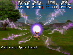 Plasma (プラズマ), Shine Plasma (シャインプラスマ), and Spark Plasma (スパークプラスマ) make up one of the strongest and most popular groups of Jupiter Psynergy available. It receives heavy usage throughout the series, as each level of the technique is very powerful for when it learned and retains much of that power for a long while afterwards. The Plasma Psynergy series is very similar to the Thunderclap Psynergy series used by the Ninja class series, which is also the (aforementioned) strongest of the Jupiter series.