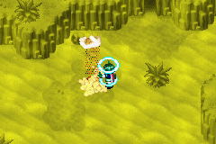 Scoop (スコップ, Scoop) is a Venus Utility Psynergy in Golden Sun: The Lost Age that allows the player to "Dig in soft ground" to discover what might be hidden under the dirt. It is granted to an Adept equipped with the Scoop Gem item that is earned at Yampi Desert after defeating the King Scorpion boss. Scoop is required to beat the game and costs 1 PP to use. It can be used on circular distortions in the sand to try and find valuable items. It can also be used in the Gondowan Cliffs on cracks in the ground to allow geysers to shoot up out of the ground. It can be used on dirt, sand, and snow.