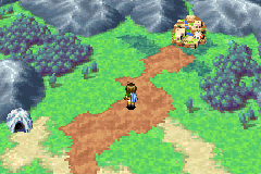 Shaman Village (シャーマン村) is a settlement in the center of Hesperia, surrounded by mountains and reachable only by traveling through the Shaman Village Cave in The Lost Age. The town is connected to the dungeon-style location Trial Road, which acts as a similar style of "competition dungeon" to Golden Sun's Colosso.