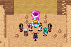 Aroma: In the area around the fortuneteller's hut. Reached by approaching the earth pillar from the bottom (which is reached through the rightmost structure in town) and Moving it left, then crossing the earth pillar from left to right (this is reached through Moapa's house).