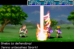 Spark is the second Mars Djinni in Golden Sun: The Lost Age. The separate Djinn list viewable with the Select button from the status screen lists Spark and all other Mars Djinn introduced in The Lost Age before the seven Mars Djinn from the original Golden Sun, most likely because all the Djinn from the original game can be gotten all at once late in The Lost Age. However, the original Djinn are ordered before all of the Djinn introduced in The Lost Age in the Djinn inventory screen while they are allocated to characters. By this order, Spark is the ninth Mars Djinni in the GBA series, rather than the second.