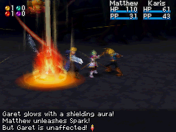 When Set, Spark increases its Adept's base HP by 11 and base Psynergy Points by 6.