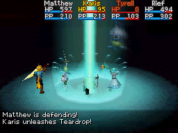 None of this is to mention the end of the game and the post-game beyond that; the Tua Warriors at Apollo Sanctum guarantee dropping a Water of Life every time they are defeated in a battle, and there is no limit to how many Waters of Life you can amass, and amass easily. Should enough Tua Warriors be fought that every Adept has their own collection of Waters of Life to use in the final battle and the post-game, none of the reviving Djinn should ever be used for the sake of their effects. The only purpose to Unleashing them at that point is setting up for a summon, and even then, other Djinn are typically better alternatives unless another Adept happens to be Downed at the same time. In this case, Teardrop may well still not be worth using.