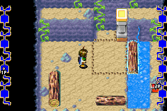 If you want the chest at the lower right corner (which contains a Vial) for the sake of the upcoming Moapa battle, the best time to roll the lower vertical log back right so that it falls into the water near the chest would be early on, before you start climbing the northwest ivy. Otherwise, you would have to wait until you have finished pushing the upper vertical log into the river, in order to roll the horizontal log back north and out of the way of the lower vertical log.