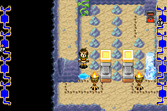 For most players, each of the two courses will always feature the same puzzle rooms in the same order between different game files. However, in an obscure mechanic that is shared with the conduit puzzle in Gabomba Statue and the hallway maze in Gaia Rock, which puzzles rooms are assigned to which course is dynamically determined by the name the player gave Felix at the start of Golden Sun: The Lost Age. This walkthrough arranges and labels the two courses' puzzle rooms the way they appear in a game file where the player left the main player-character's name as "Felix".