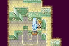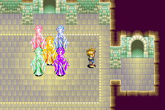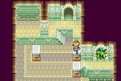 The room at the bottom end of Tunnel Ruins features five statues of separate colors and five tiles on the ground; you're supposed to move the statues onto the tiles in the right way, and the clues as to where the statues go in relation to each other are provided by using Mind Read on each of the statues (e.g. "Red shines northwest of me."). The correct configuration is for Red to be on the upper left tile, Blue on the upper right, Yellow on the center tile, Green on the lower left tile, and Violet on the lower right tile. The door to the right of the room opens when all five statues are at their correct tiles, and when you go up the subsequent room's staircase, you will end up at the beginning of the true dungeon portion of Venus Lighthouse.