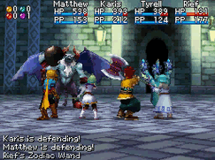 While past Unleashes were always single target attacks, certain Unleashes are now ranged Attacks, such as the Masamune's Rising Dragon, which not only affects the targeted character, but the enemies directly adjacent to the original target. The Star Dust unleash, belonging to the Silver Longbow and the Sagittarius Bow, has a wider range, extending up to two enemies on either side of the original target. Unlike Psynergy, where the player can freely choose which enemies to target, choosing the targets of an Unleash is more restricted. Standard weapon attacks always affect a single target, which is chosen when the player is selecting moves for their party. If an unleash is triggered during an Adept's attack, the originally selected target will always receive the most damage. Enemies immediately adjacent will take lesser amounts of damage.