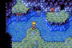 Back at a room where you were in earlier, but with the lowered ground to the lower right now visibly filled with water, go left and up the stairs at the upper left corner, and follow the subsequent path down to the room where you originally emptied the water out of. Enter the lower-floor doorway through which the water was emptied through (just to the lower right of your position), and in the subsequent room, hop the gap and climb up right to go up some stairs. You will pretty quickly be led back outside in Vault, at the elevated cave exit; if you remembered to scare the Venus Djinni out of its tree earlier by ringing the bell, it will be on this "elevated island" for you to collect, and you will have earned the Venus Djinni Sap. Reenter the cave and simply cast Retreat to return to the ladder at Vault Cave's entrance, and climb back into Vault.