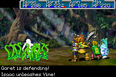 Golden Sun: Vine works particularly well against Deadbeard, who ordinarily removes all buffs you cast upon yourself with Break but does not have any specific measures to remove negative effects from himself. Deadbeard has an agility rating to speak of, so unleashing Vine can be quite useful if some of your party members do not act before Deadbeard's first attack in the turn.