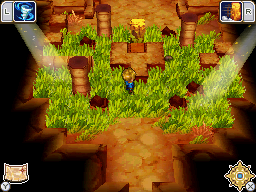 Golden Sun: Dark Dawn: Vine is found late in the Teppe Ruins, in the room before the room where Sveta is met. It will run away into tall grass , and will run away from the player through the grass for as long as the player tries to catch it, so the player must walk up a ledge to the left of the room and move an earth pillar up one tile into the grass. With this pillar in place, when the player next chases Vine, it will encounter the pillar and position itself up north in the open, and you can grab it without fighting it. Vine will be permanently missed once the Belinsk Ruins dungeon is completed, because the Morgal region will be locked off, preventing your from reentering Teppe Ruins through its exit.