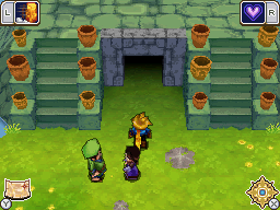 The Yamata Ruins are a set of underground ruins completed in the ancient past. One major feature of the ruins are its sand-related puzzles, which hide pathways into the ruins. These pathways can be revealed by utilizing the Red and Blue Orbs at specified points. At its heart, a large stone figure holds the Yellow Orb, which can only be obtained by using the Red and Blue Orbs in unison.